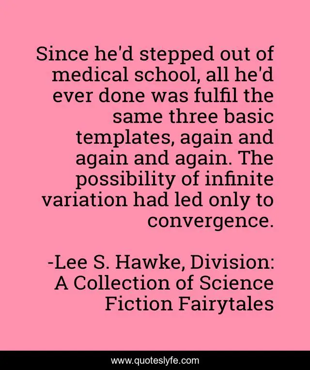 "Lee S. Hawke, Division: A Collection of Science Fiction Fairytales Quotes." Quoteslyfe.com, 2025. Tue. 09 Dec. 2025. <https://www.quoteslyfe.com/quote/Since-he-d-stepped-out-of-medical-157391>.