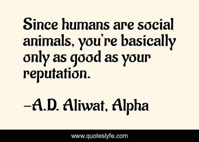 This page presents the quote "Since humans are social animals, you’re basically only as good as your reputation.". Author of this quote is A.D. Aliwat, Alpha. This quote is about human-nature, wisdom, social-dynamics, reputation,.
