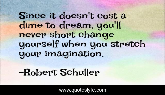 This page presents the quote "Since it doesn't cost a dime to dream, you'll never short change yourself when you stretch your imagination.". Author of this quote is Robert Schuller. This quote is about imagination, dream,.