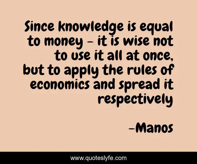 This page presents the quote "Since knowledge is equal to money - it is wise not to use it all at once, but to apply the rules of economics and spread it respectively". Author of this quote is Manos. .