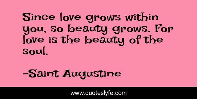 This page presents the quote "Since love grows within you, so beauty grows. For love is the beauty of the soul.". Author of this quote is Saint Augustine. This quote is about soul, beauty, love is,.