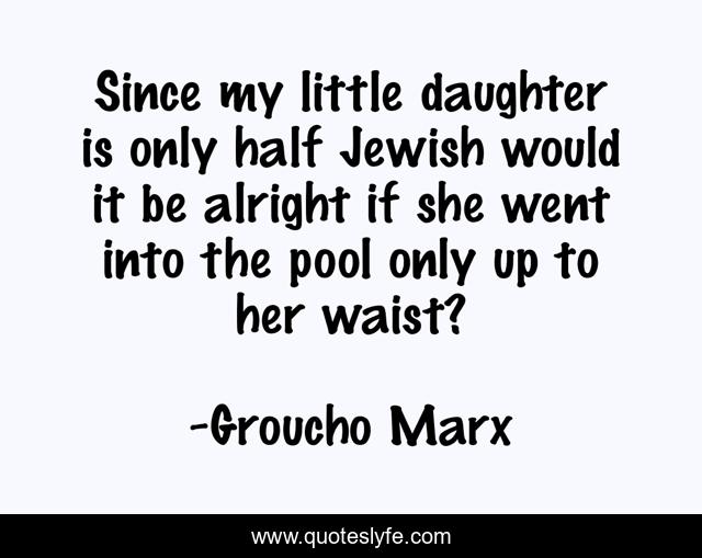 This page presents the quote "Since my little daughter is only half Jewish would it be alright if she went into the pool only up to her waist?". Author of this quote is Groucho Marx. This quote is about bigotry, prejudice,.