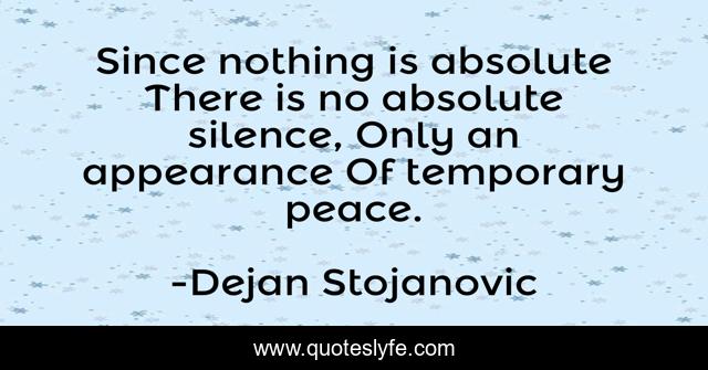 This page presents the quote "Since nothing is absolute There is no absolute silence, Only an appearance Of temporary peace.". Author of this quote is Dejan Stojanovic. This quote is about literature, temporary, dejan-stojanovic, peace, appearance, poetry, wisdom, quotes, silence,.