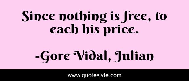 This page presents the quote "Since nothing is free, to each his price.". Author of this quote is Gore Vidal, Julian. This quote is about price, free,.