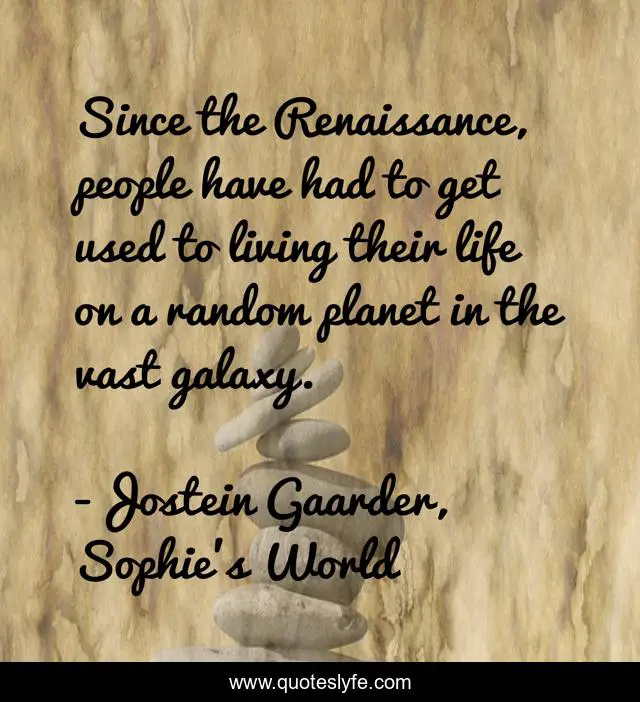 This page presents the quote "Since the Renaissance, people have had to get used to living their life on a random planet in the vast galaxy.". Author of this quote is Jostein Gaarder, Sophie's World. .
