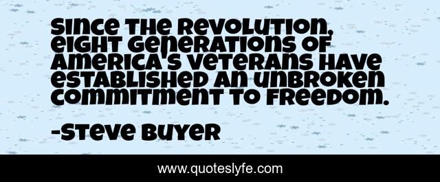 This page presents the quote "Since the Revolution, eight generations of America's veterans have established an unbroken commitment to freedom.". Author of this quote is Steve Buyer. This quote is about america, commitment,.