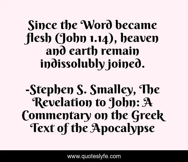 "Stephen S. Smalley, The Revelation to John: A Commentary on the Greek Text of the Apocalypse Quotes." Quoteslyfe.com, 2025. Sat. 06 Dec. 2025. <https://www.quoteslyfe.com/quote/Since-the-Word-became-flesh-John-1-201693>.