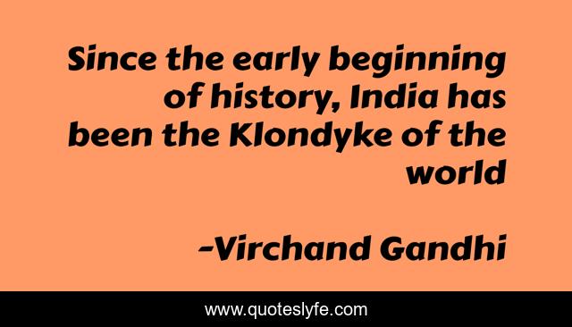 This page presents the quote "Since the early beginning of history, India has been the Klondyke of the world". Author of this quote is Virchand Gandhi. This quote is about history-of-india, quotes-on-india, india, history,.