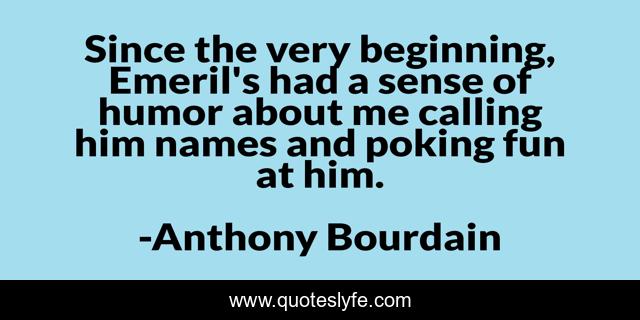 This page presents the quote "Since the very beginning, Emeril's had a sense of humor about me calling him names and poking fun at him.". Author of this quote is Anthony Bourdain. This quote is about fun, me, beginning,.