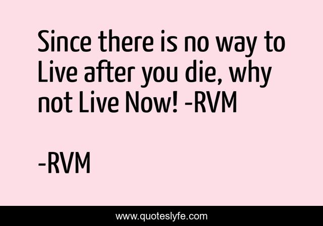 This page presents the quote "Since there is no way to Live after you die, why not Live Now! -RVM". Author of this quote is RVM. This quote is about motivation, inspiration,.