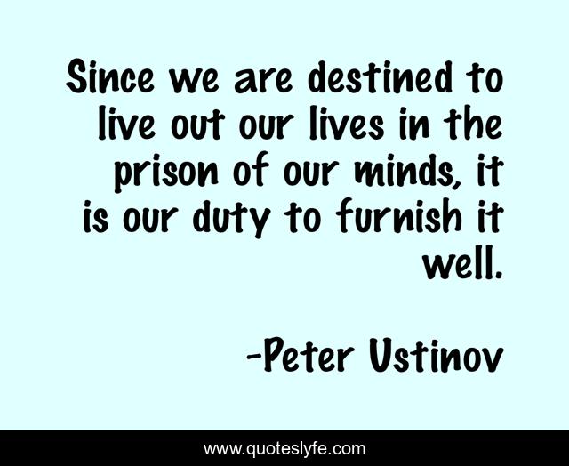 This page presents the quote "Since we are destined to live out our lives in the prison of our minds, it is our duty to furnish it well.". Author of this quote is Peter Ustinov. This quote is about culture, reading,.