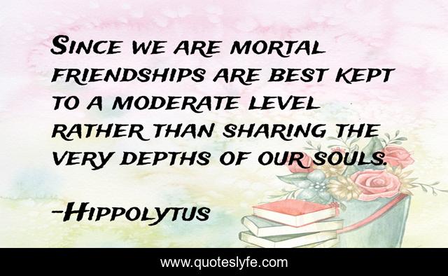 This page presents the quote "Since we are mortal friendships are best kept to a moderate level rather than sharing the very depths of our souls.". Author of this quote is Hippolytus. .