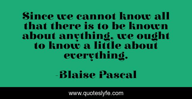 "Blaise Pascal Quotes." Quoteslyfe.com, 2025. Fri. 05 Dec. 2025. <https://www.quoteslyfe.com/quote/Since-we-cannot-know-all-that-there-322080>.