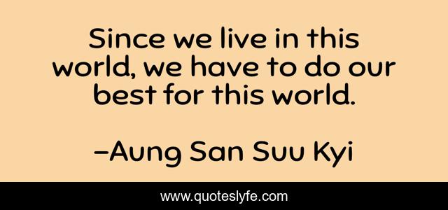 This page presents the quote "Since we live in this world, we have to do our best for this world.". Author of this quote is Aung San Suu Kyi. This quote is about world, live, our,.