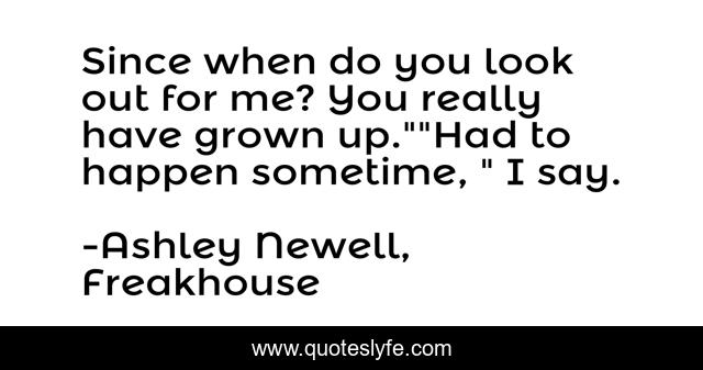 This page presents the quote "Since when do you look out for me? You really have grown up.""Had to happen sometime, " I say.". Author of this quote is Ashley Newell, Freakhouse. .