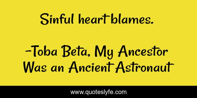 "Toba Beta, My Ancestor Was an Ancient Astronaut Quotes." Quoteslyfe.com, 2025. Mon. 08 Dec. 2025. <https://www.quoteslyfe.com/quote/Sinful-heart-blames-80592>.