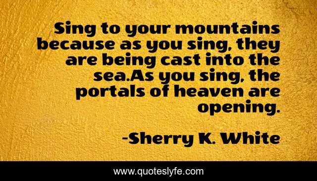 This page presents the quote "Sing to your mountains because as you sing, they are being cast into the sea.As you sing, the portals of heaven are opening.". Author of this quote is Sherry K. White. This quote is about sing, energy, portals, praise,.