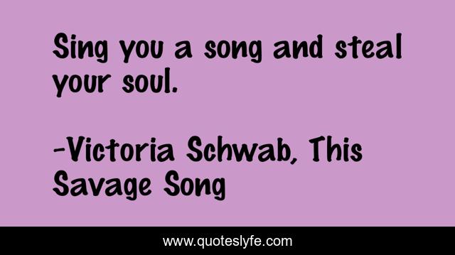 This page presents the quote "Sing you a song and steal your soul.". Author of this quote is Victoria Schwab, This Savage Song. This quote is about music, soul,.