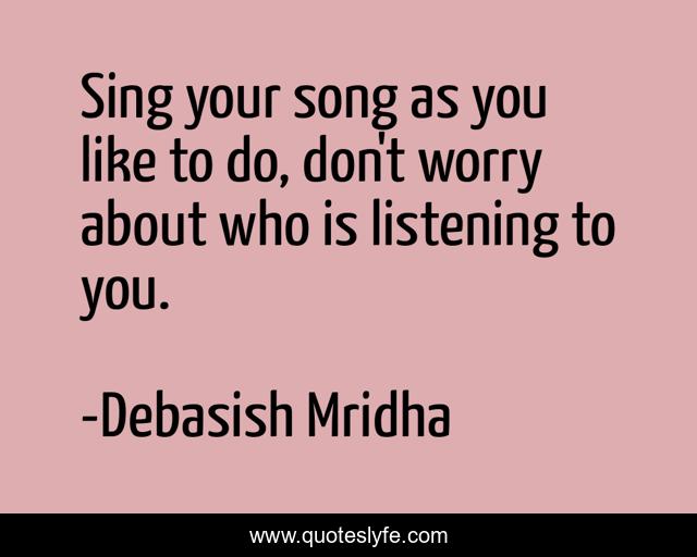 This page presents the quote "Sing your song as you like to do, don't worry about who is listening to you.". Author of this quote is Debasish Mridha. This quote is about don-t-worry, mridha, debasish, debasish-mridha, sing-your-song, listening-to-you, philosophy,.