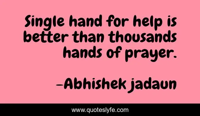 This page presents the quote "Single hand for help is better than thousands hands of prayer.". Author of this quote is Abhishek jadaun. This quote is about enthusiasm, philosophy-of-life, motivational-social, inspirational, help,.