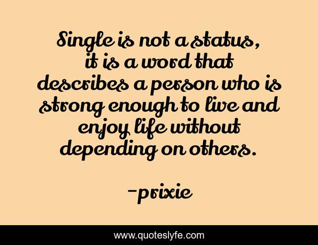 This page presents the quote "Single is not a status, it is a word that describes a person who is strong enough to live and enjoy life without depending on others.". Author of this quote is prixie. This quote is about enjoy, status, life, word, depends, describe, enough, live, others,.