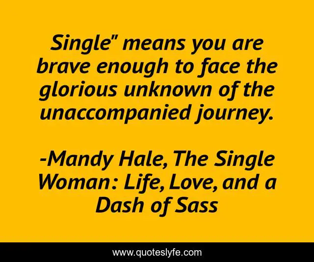 "Mandy Hale, The Single Woman: Life, Love, and a Dash of Sass Quotes." Quoteslyfe.com, 2025. Sun. 07 Dec. 2025. <https://www.quoteslyfe.com/quote/Single-means-you-are-brave-enough-to-95515>.