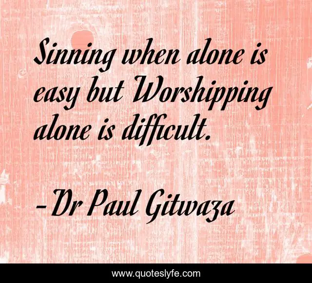 This page presents the quote "Sinning when alone is easy but Worshipping alone is difficult.". Author of this quote is Dr Paul Gitwaza. This quote is about easy-way, god, religion-and-philosophy, christianity, sinning, humility, alone, churches, worship,.