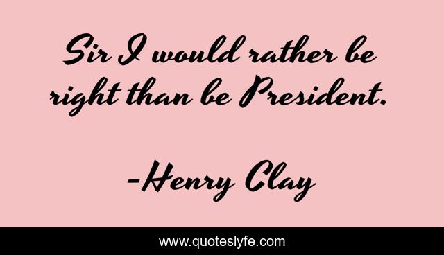 This page presents the quote "Sir I would rather be right than be President.". Author of this quote is Henry Clay. .