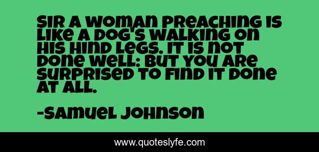 This page presents the quote "Sir a woman preaching is like a dog's walking on his hind legs. It is not done well: but you are surprised to find it done at all.". Author of this quote is Samuel Johnson. .