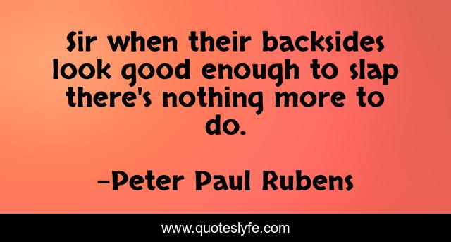 This page presents the quote "Sir when their backsides look good enough to slap there's nothing more to do.". Author of this quote is Peter Paul Rubens. This quote is about painters, painting,.
