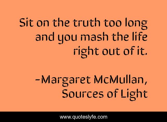 "Margaret McMullan, Sources of Light Quotes." Quoteslyfe.com, 2025. Fri. 05 Dec. 2025. <https://www.quoteslyfe.com/quote/Sit-on-the-truth-too-long-and-228603>.