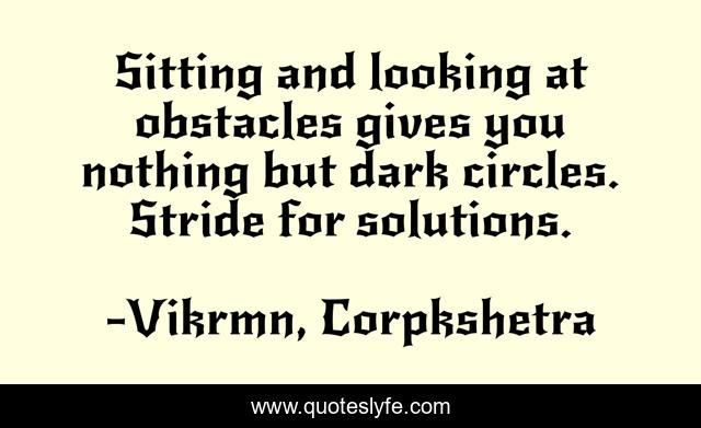 "Vikrmn, Corpkshetra Quotes." Quoteslyfe.com, 2025. Fri. 05 Dec. 2025. <https://www.quoteslyfe.com/quote/Sitting-and-looking-at-obstacles-gives-you-83644>.