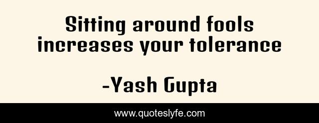 This page presents the quote "Sitting around fools increases your tolerance". Author of this quote is Yash Gupta. This quote is about fools, tolerance, positive-thinking,.