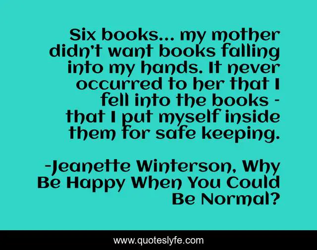 "Jeanette Winterson, Why Be Happy When You Could Be Normal? Quotes." Quoteslyfe.com, 2025. Sun. 07 Dec. 2025. <https://www.quoteslyfe.com/quote/Six-books-my-mother-didn-t-want-43448>.