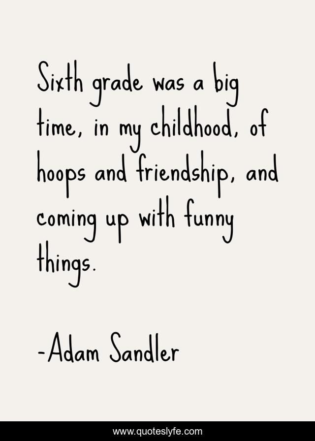 This page presents the quote "Sixth grade was a big time, in my childhood, of hoops and friendship, and coming up with funny things.". Author of this quote is Adam Sandler. This quote is about friendship, childhood, time,.