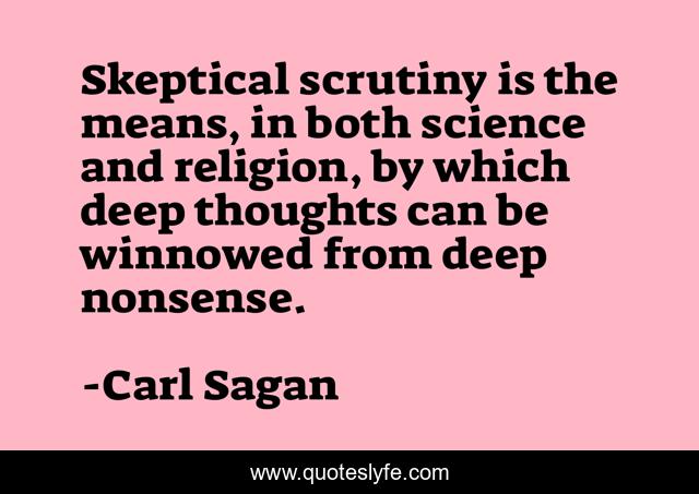 This page presents the quote "Skeptical scrutiny is the means, in both science and religion, by which deep thoughts can be winnowed from deep nonsense.". Author of this quote is Carl Sagan. This quote is about religion, deep, thoughts,.