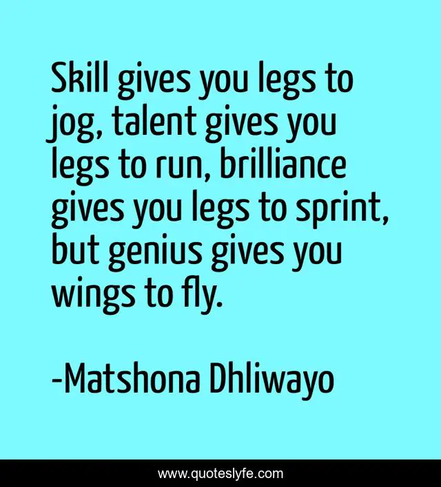 "Matshona Dhliwayo Quotes." Quoteslyfe.com, 2025. Sat. 06 Dec. 2025. <https://www.quoteslyfe.com/quote/Skill-gives-you-legs-to-jog-talent-57718>.