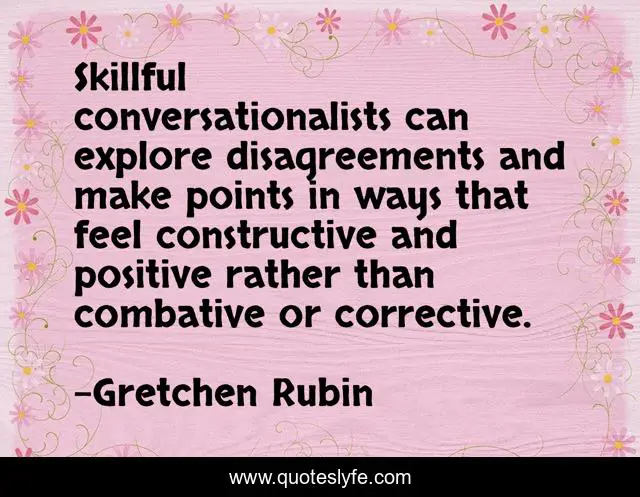 This page presents the quote "Skillful conversationalists can explore disagreements and make points in ways that feel constructive and positive rather than combative or corrective.". Author of this quote is Gretchen Rubin. This quote is about feel, explore, constructive,.