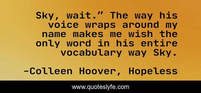 "Colleen Hoover, Hopeless Quotes." Quoteslyfe.com, 2025. Fri. 05 Dec. 2025. <https://www.quoteslyfe.com/quote/Sky-wait-The-way-his-voice-wraps-112606>.