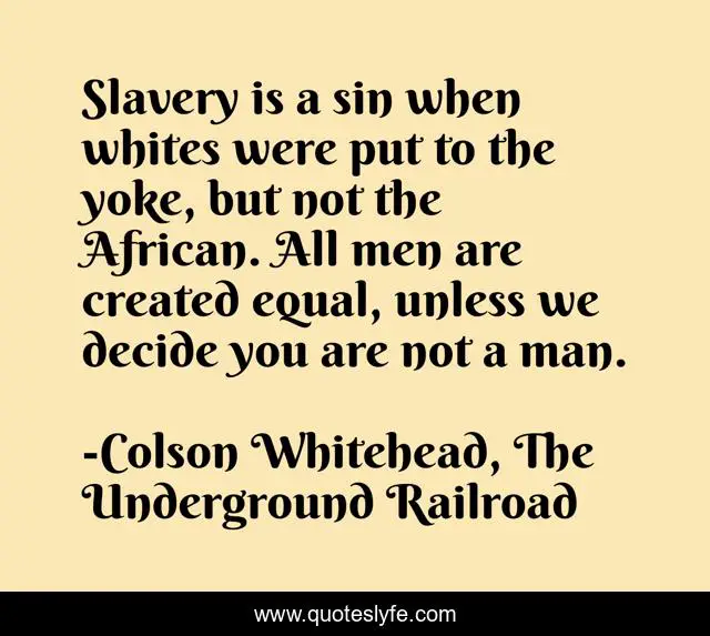 "Colson Whitehead, The Underground Railroad Quotes." Quoteslyfe.com, 2025. Fri. 05 Dec. 2025. <https://www.quoteslyfe.com/quote/Slavery-is-a-sin-when-whites-were-228190>.