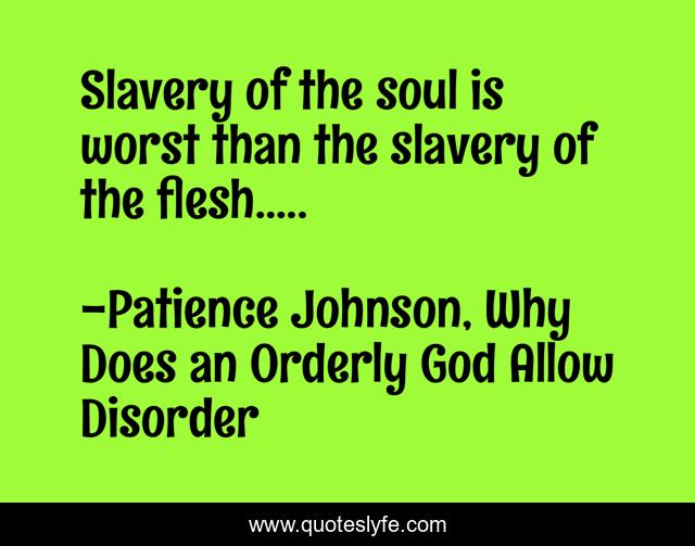"Patience Johnson, Why Does an Orderly God Allow Disorder Quotes." Quoteslyfe.com, 2025. Mon. 08 Dec. 2025. <https://www.quoteslyfe.com/quote/Slavery-of-the-soul-is-worst-than-50969>.