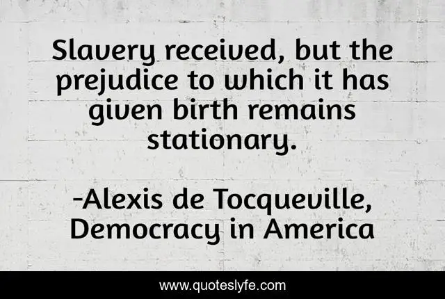 "Alexis de Tocqueville, Democracy in America Quotes." Quoteslyfe.com, 2025. Sat. 06 Dec. 2025. <https://www.quoteslyfe.com/quote/Slavery-received-but-the-prejudice-to-which-181267>.