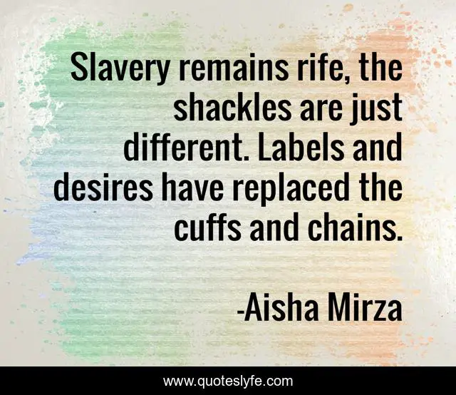 "Aisha Mirza Quotes." Quoteslyfe.com, 2025. Sat. 06 Dec. 2025. <https://www.quoteslyfe.com/quote/Slavery-remains-rife-the-shackles-are-just-176630>.