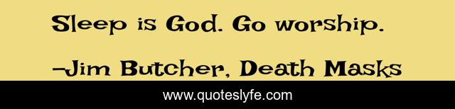"Jim Butcher, Death Masks Quotes." Quoteslyfe.com, 2026. Wed. 14 Jan. 2026. <https://www.quoteslyfe.com/quote/Sleep-is-God-Go-worship-198935>.