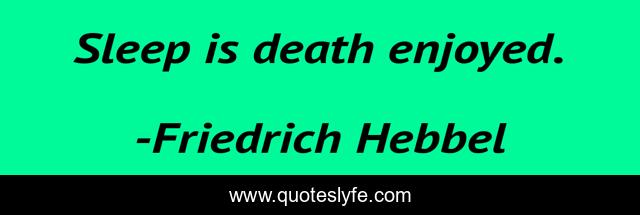 "Friedrich Hebbel Quotes." Quoteslyfe.com, 2025. Fri. 05 Dec. 2025. <https://www.quoteslyfe.com/quote/Sleep-is-death-enjoyed-22250>.