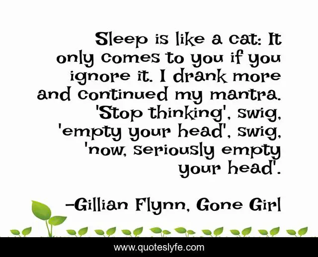 "Gillian Flynn, Gone Girl Quotes." Quoteslyfe.com, 2025. Sat. 13 Dec. 2025. <https://www.quoteslyfe.com/quote/Sleep-is-like-a-cat-It-only-138213>.