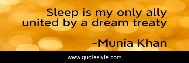 This page presents the quote "Sleep is my only ally united by a dream treaty". Author of this quote is Munia Khan. This quote is about treaty, only, sleep, dreams, sleeping, dream, ally,.