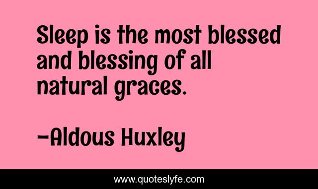 This page presents the quote "Sleep is the most blessed and blessing of all natural graces.". Author of this quote is Aldous Huxley. .