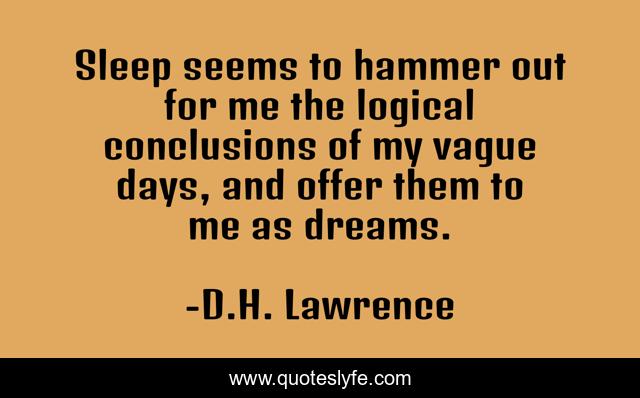 This page presents the quote "Sleep seems to hammer out for me the logical conclusions of my vague days, and offer them to me as dreams.". Author of this quote is D.H. Lawrence. .