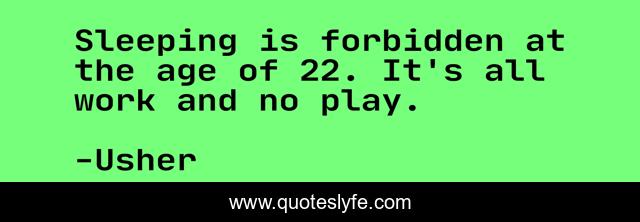 This page presents the quote "Sleeping is forbidden at the age of 22. It's all work and no play.". Author of this quote is Usher. This quote is about play, work, sleeping,.